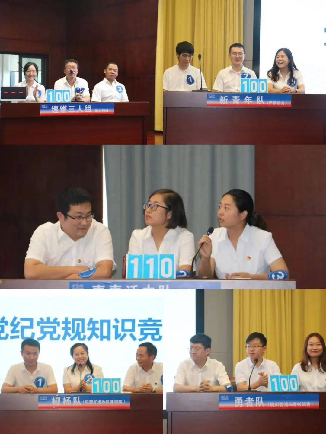 在知識(shí)競(jìng)賽中,來(lái)自集團(tuán)機(jī)關(guān)和基層單位選派的5支隊(duì)伍,經(jīng)過(guò)必答題、搶答題、風(fēng)險(xiǎn)題三個(gè)環(huán)節(jié)的激烈角逐,賽出了風(fēng)格,賽出了水平,為大家奉上了一場(chǎng)集知識(shí)性與趣味性于一體的黨史黨紀(jì)黨規(guī)教育課,展現(xiàn)了產(chǎn)投人團(tuán)結(jié)協(xié)作,奮發(fā)向上的良好團(tuán)隊(duì)風(fēng)貌。最后陜建新型建材黨支部組建的代表隊(duì)榮獲一等獎(jiǎng),陜建銅川智造黨支部及陜建建材銷(xiāo)售黨支部組建的代表隊(duì)獲得二等獎(jiǎng),陜建內(nèi)蒙礦業(yè)黨支部及陜建韓城鋼構(gòu)黨支部組建的代表隊(duì)獲得三等獎(jiǎng)。