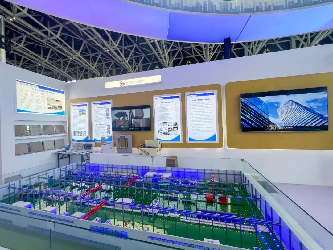 在6號館智能制造館,作為建筑領域智能制造的引領者,陜建產投集團設立了生產展示區(qū)、VR體驗區(qū)和互動交流區(qū)。在生產展示區(qū),裝配式建筑產品生產線、無石棉硅酸鈣板生產線深度還原了陜建產投集團兩大拳頭產品生產制造的全過程,為參觀者近距離、全方位解密了智能裝配式建筑產品從設計到原材料加工,再到檢驗出廠的每一個工序。在VR體驗區(qū),陜建產投集團占地數(shù)千畝的生產廠房、車間被還原在VR眼鏡中,參觀者戴上眼鏡就可以沉浸式、深入地了解陜建產投集團下屬企業(yè)規(guī)模及產業(yè)特色,對裝配式建筑有更加立體的了解。在互動交流區(qū),觀眾可以坐下來了解公司生產的產品和應用場景,溝通需求,為市場推廣打下良好的基礎。