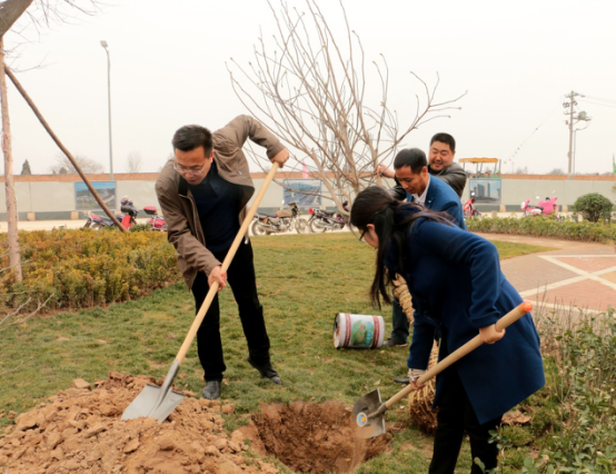 在陜建(西咸新區(qū))建筑產(chǎn)業(yè)基地,參加植樹的領(lǐng)導(dǎo)和職工個(gè)個(gè)熱情高漲、干勁十足,兩個(gè)人一組,扶直樹苗、揮鍬培土、踩實(shí)壓緊,大家配合得很默契,整個(gè)勞動(dòng)場面繁忙而有序。栽下一棵棵樹苗,種下一份份希望。經(jīng)過一下午的緊張奮戰(zhàn),一排排整齊的苗木為初春增添了生機(jī),為美麗的基地再添新綠。